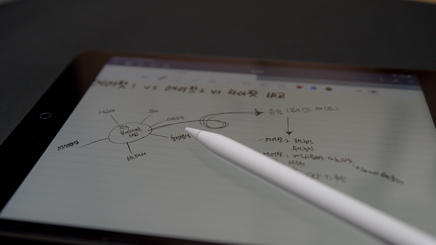 그리고 저처럼 평소에 메모하는 것을 좋아하고 이미 습관이 되어있으신 분들. 이런 분들은 애플펜슬을 사용하고 나서 만족을 하실수도? 못하실 수도 있습니다. 메모를 하실 때, 그 펜의 잉크맛으로 메모를 하시는 분들은 애플펜슬을 사용하는 순간 아날로그 맛이 사라지기 때문에 다시 종이로 돌아가실 수도 있습니다. 그런데 단순히 빠르게 메모를 하고, 더 좋은 메모를 하기 위해 펜이나 종이를 좋은 것으로 사용하셨던 분들은 애플펜슬로 넘어가게 되면 오히려 좋은 경험을 가질 수 있다고 생각합니다. 왜냐하면 애플펜슬을 사용하여 메모를 시작하는 순간 엄청난 능률을 경험하실거니깐요 (빵긋)