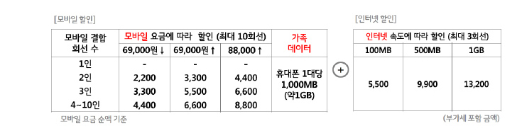 그런데 단순히 요금할인만 받는 것 뿐만 아니라 데이터와 나눠쓰기 데이터, 추가 스마트기기 회선을 지원받게 됩니다.