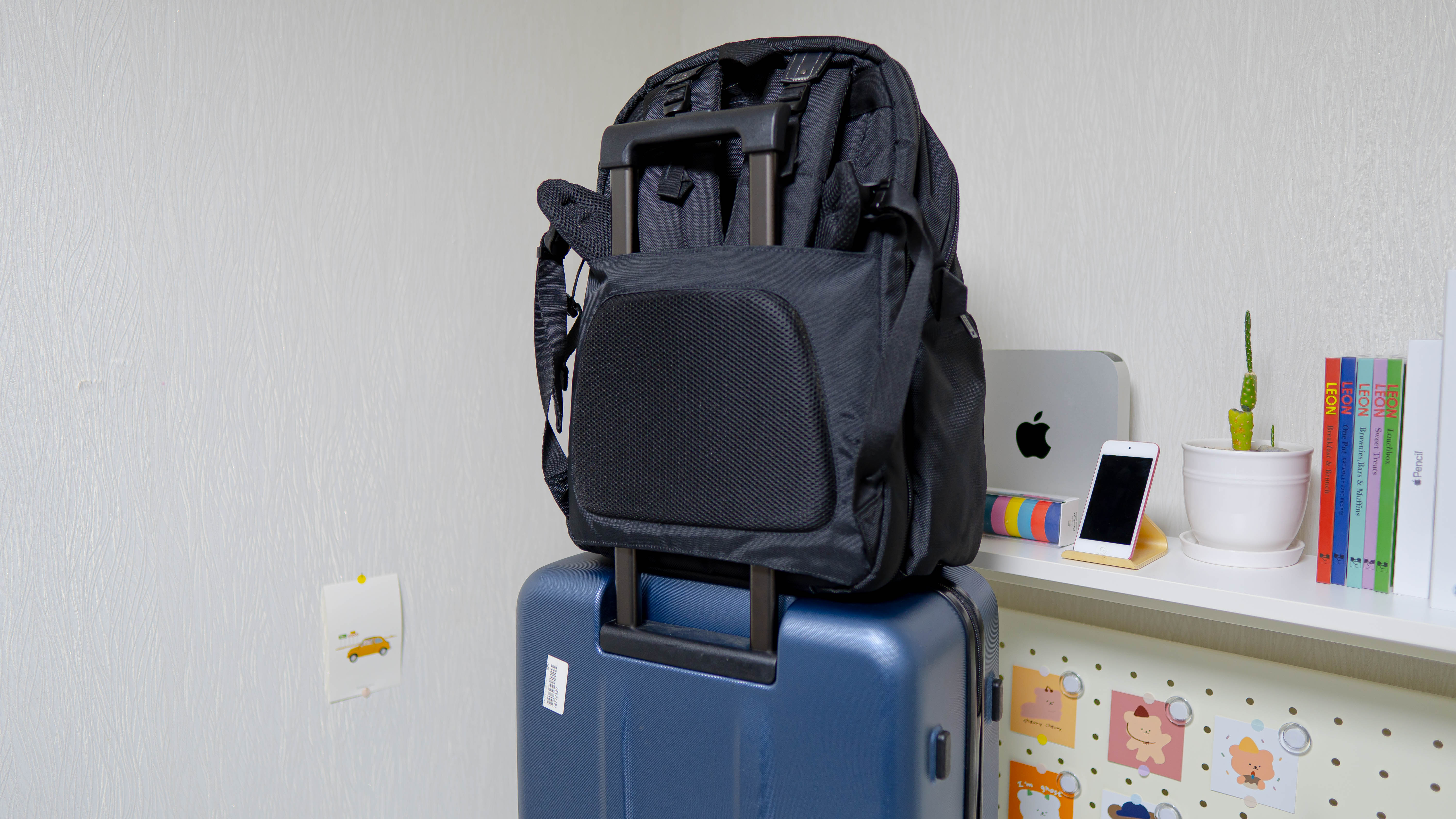 그래서 가방을 캐리어에 장착하여 비즈니스 및 여행을 가거나 비행기를 탑승할 때, 아주 편리하게 이동할 수 있습니다.