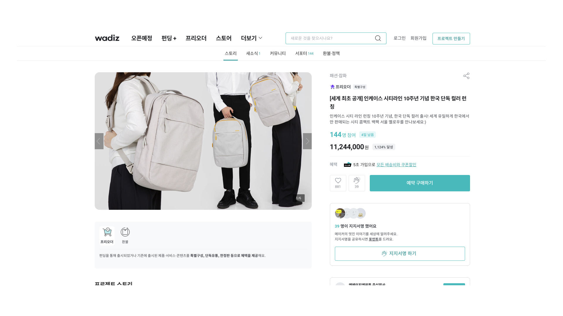와디즈에서 펀딩한 시티 콤팩트 백팩 제품을 확인해보세요!