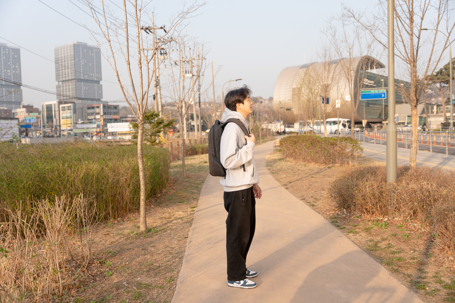 네, 당연히 가방을 메고 말이죠.