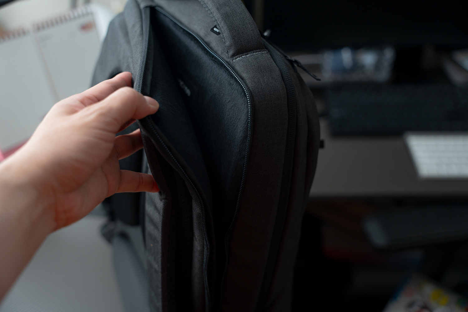 이동성에 더욱더 집중해서 효율적인 조직 구성을 갖춘 내부 구조와 디바이스 및 일상에서 필요한 그런 물품들, 필수품을 수납하기 위해서 모든 포켓에 빠르게 접근할 수 있도록 만드는 것! 이런 방향으로 가방이 제작되었습니다.