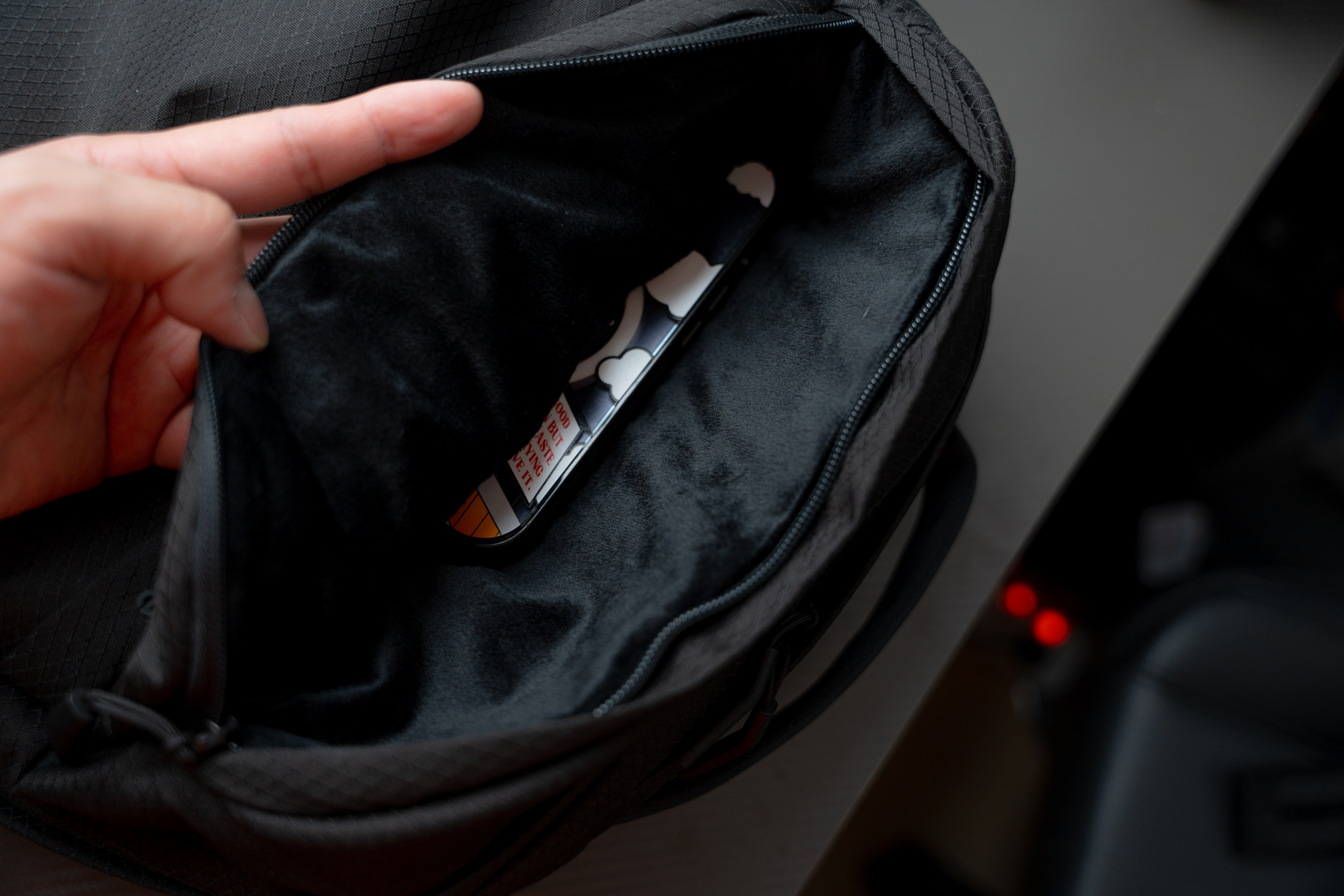 또한 포켓자체가 상단에 위치해 있다보니 빠르게 물건을 꺼내야할 때 아주 유용하게 사용할 수 있죠.